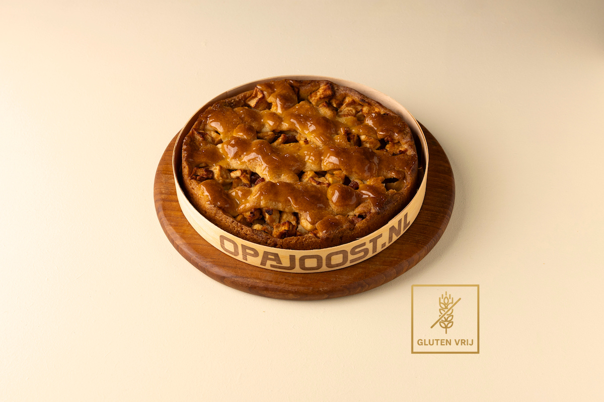 Authentieke Hollandse appeltaart, glutenvrij gebakken… luxueus verpakt, voor een zorgeloos cadeau door de brievenbus