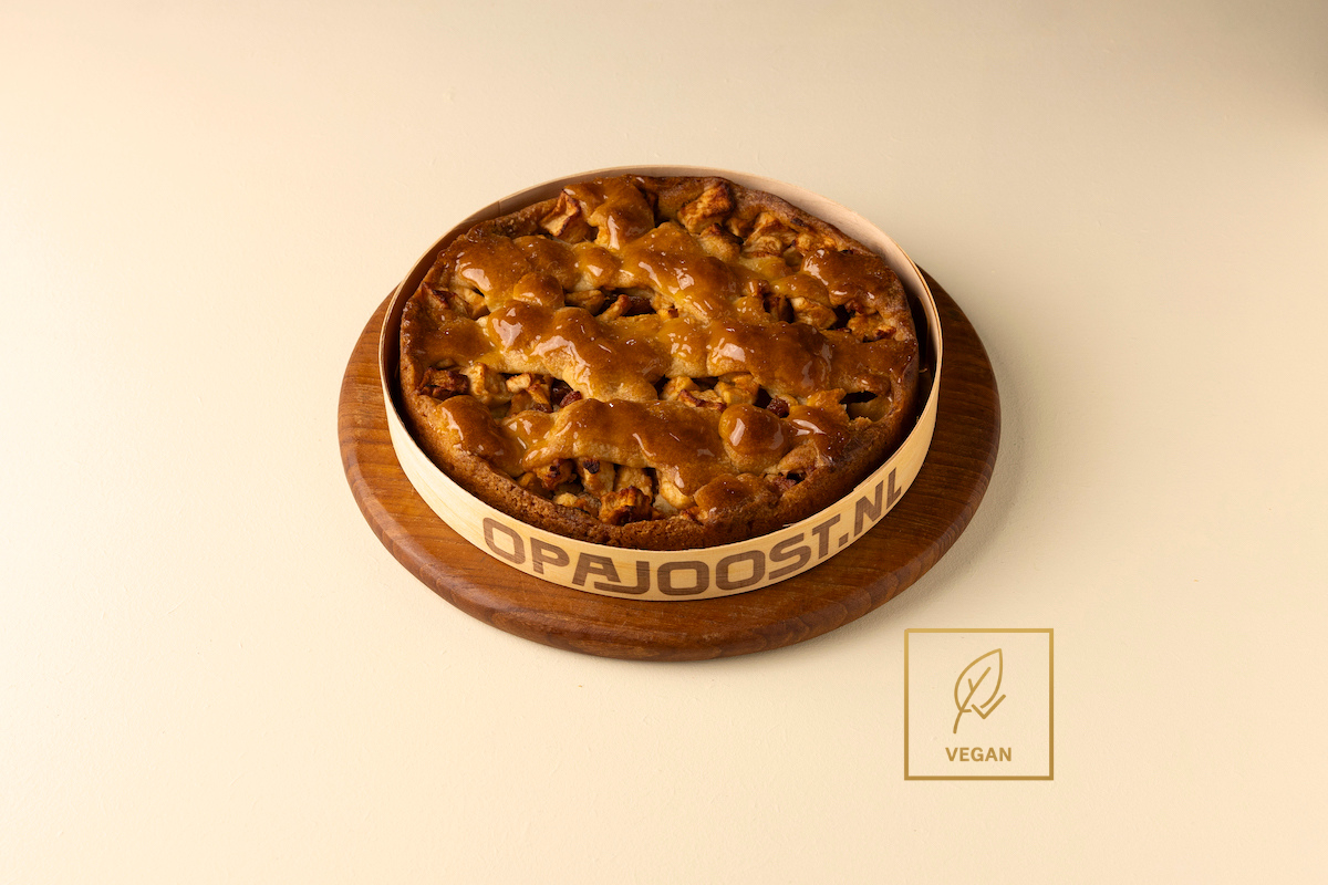 Authentieke Hollandse appeltaart, 100% plantaardig gebakken… luxueus verpakt, als verrassend cadeau door de brievenbus